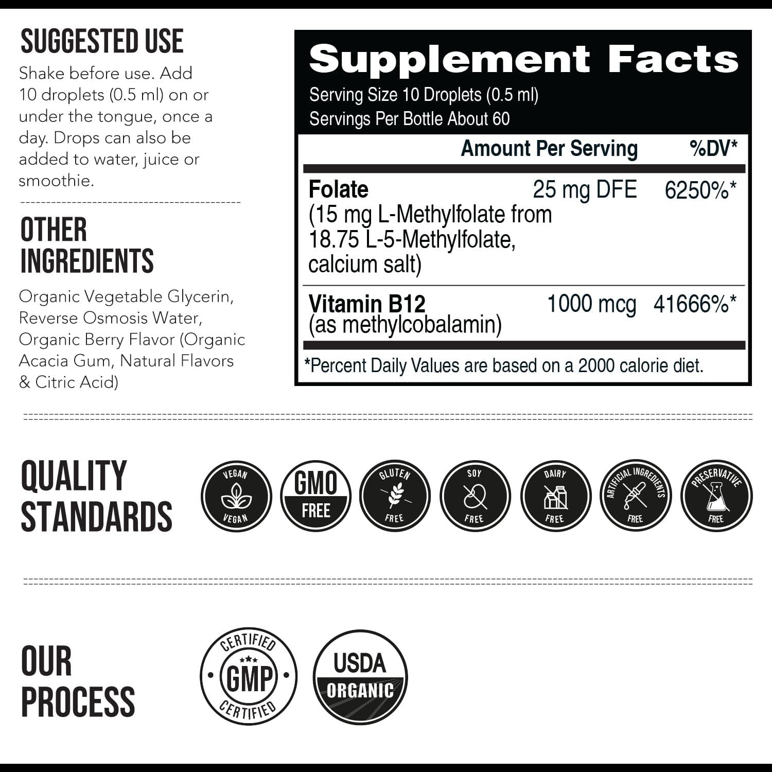 Le L-méthylfolate est la forme biologiquement active et circulante du folate (vitamine B9). Notre formule offre une dose maximale de 15 mg de L-méthylfolate. Cette concentration a été formulée pour maintenir un taux optimal de folate. La formule contient également une portion entière de méthyl-B12, un cofacteur essentiel du L-méthylfolate. La forme sublinguale liquide offre une meilleure absorption et un agréable goût de cerise. Elle contribue également à la production de neurotransmetteurs, impliqués dans le maintien de la concentration, la régulation du sommeil, l'apport d'énergie, l'équilibre hormonal et l'humeur. De plus, le méthylfolate favorise la santé cardiaque et une fonction nerveuse optimale.*